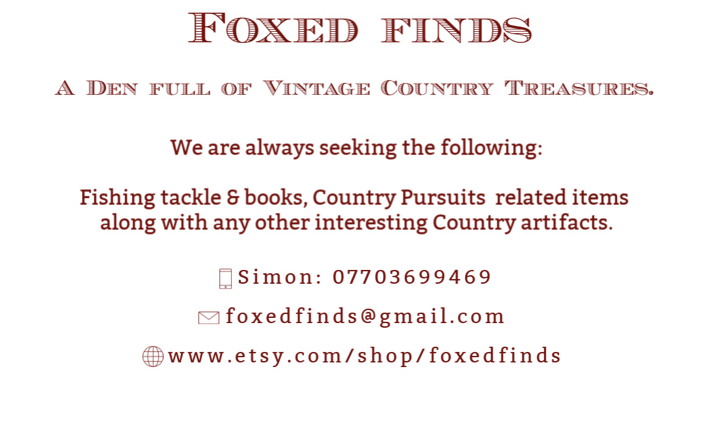As well as being an angler that enjoys fishing with old tackle; I am also a seller of vintage and preloved country sports and country living related items. I have become a junk shop trawler. It’s an addiction. The cure I believe, is yet to be found. So I cast my nets at boot sales, sharpen my elbows in readiness for a jumble sale, and even check out any skip that I may be passing. All in a good cause; to rescue those thrown away treasures. To resurrect them and either put them on a shelf or wall to enjoy; or to find them loving new homes.