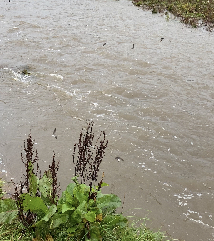 Walking a reluctant Sherlock along the squelchy, mudded bank of the river Otter in a fine “mizzle” of Devonshire rain; I couldn’t help but notice the incredibly high number of Martins darting acrobatically above the water. There were literally hundreds swooping to collect the insects that had been tempted by the warmth to hatch. For the last week we have been deluged with heavy downpours of much needed rain and along with the gale force winds, conditions have not been ideal for the nymphs to emerge.