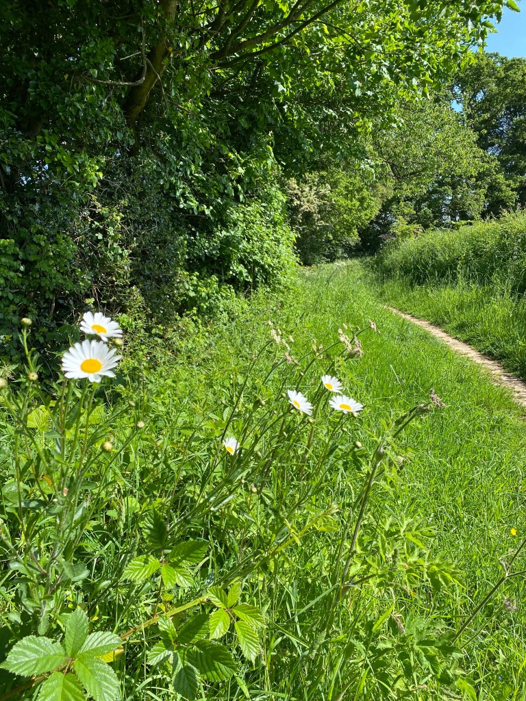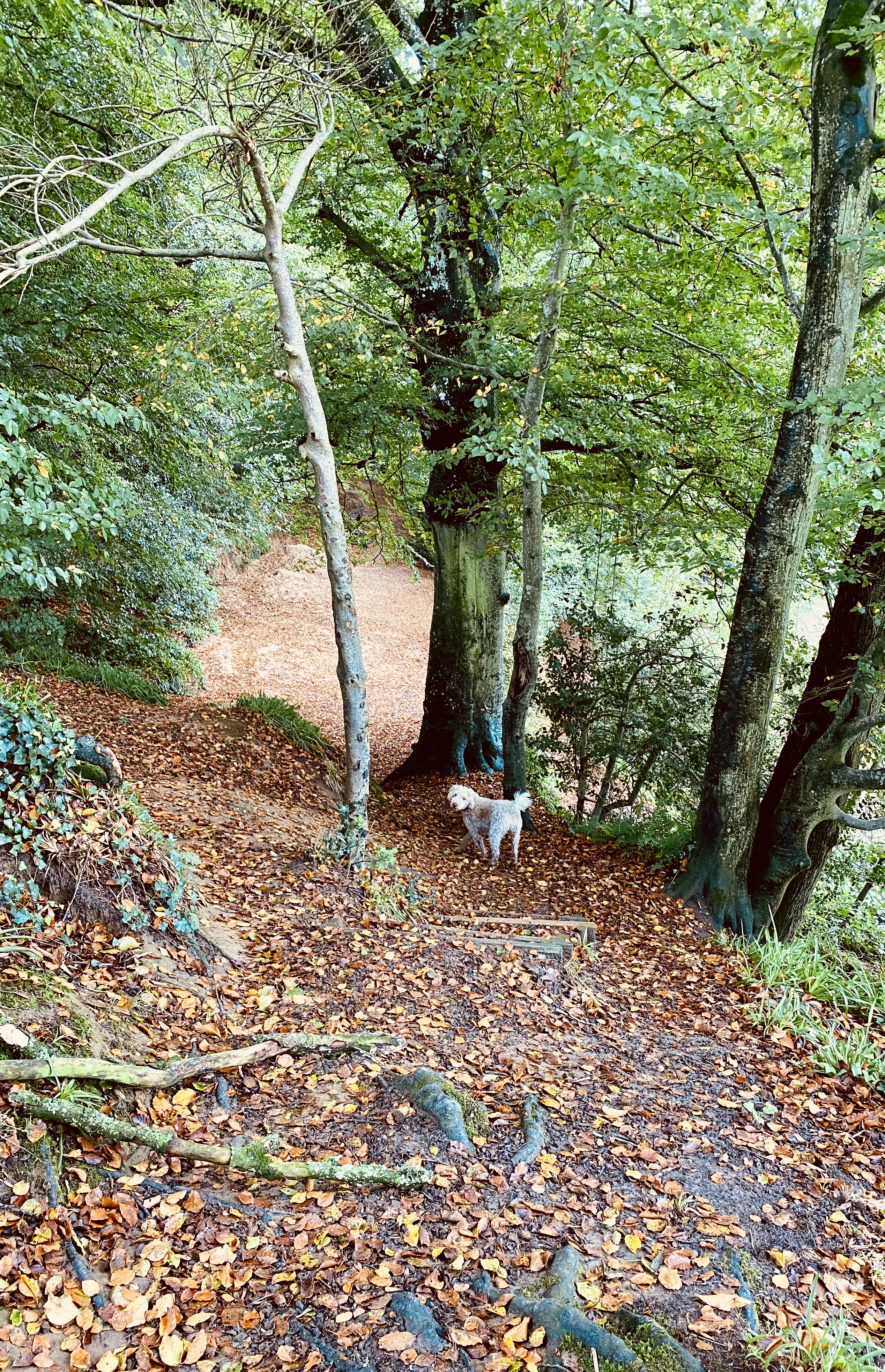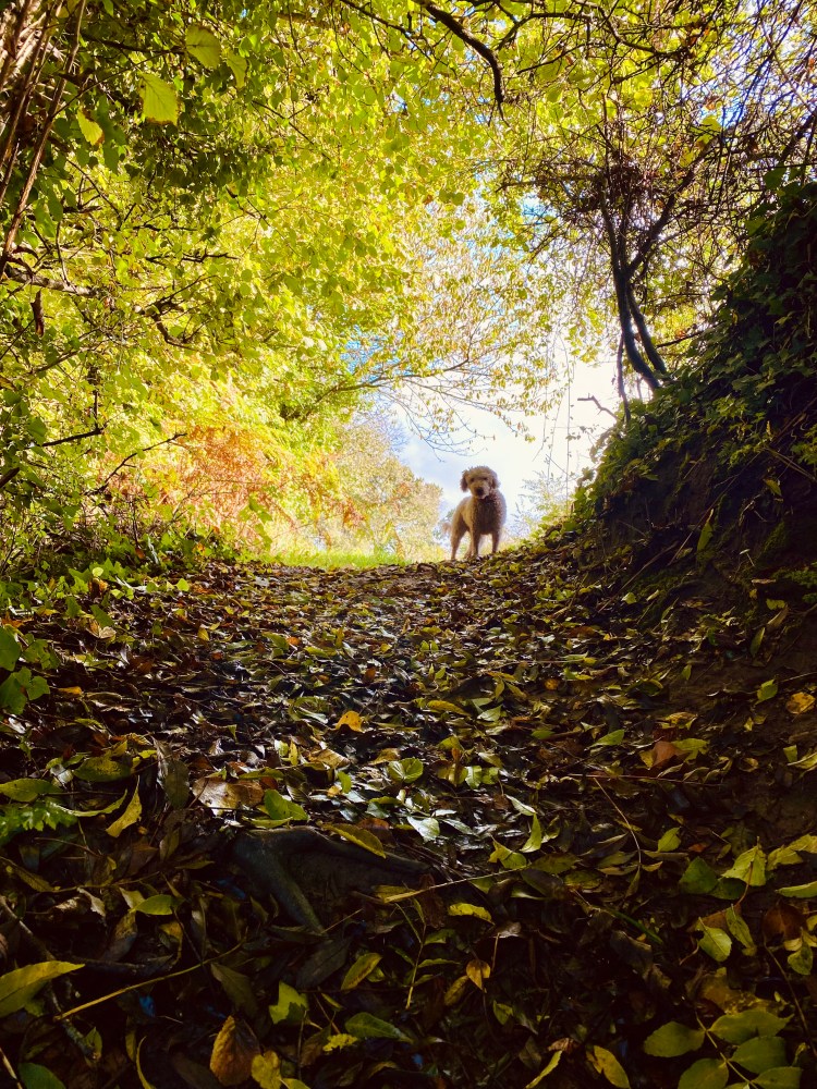 Today we pootled- not poodled, you understand; Sherlock forbade me from using that particular ‘P’ word many moons ago. Above us were numerous sand martins and swallows catapulting themselves across a back cloth of cobalt blue. September splendour. Slowly we sauntered the well worn path. There is no rush. Sherlock has much to investigate and urinate on and my knees are currently scoring an eight out of ten on the NHS ‘pain’ scale.