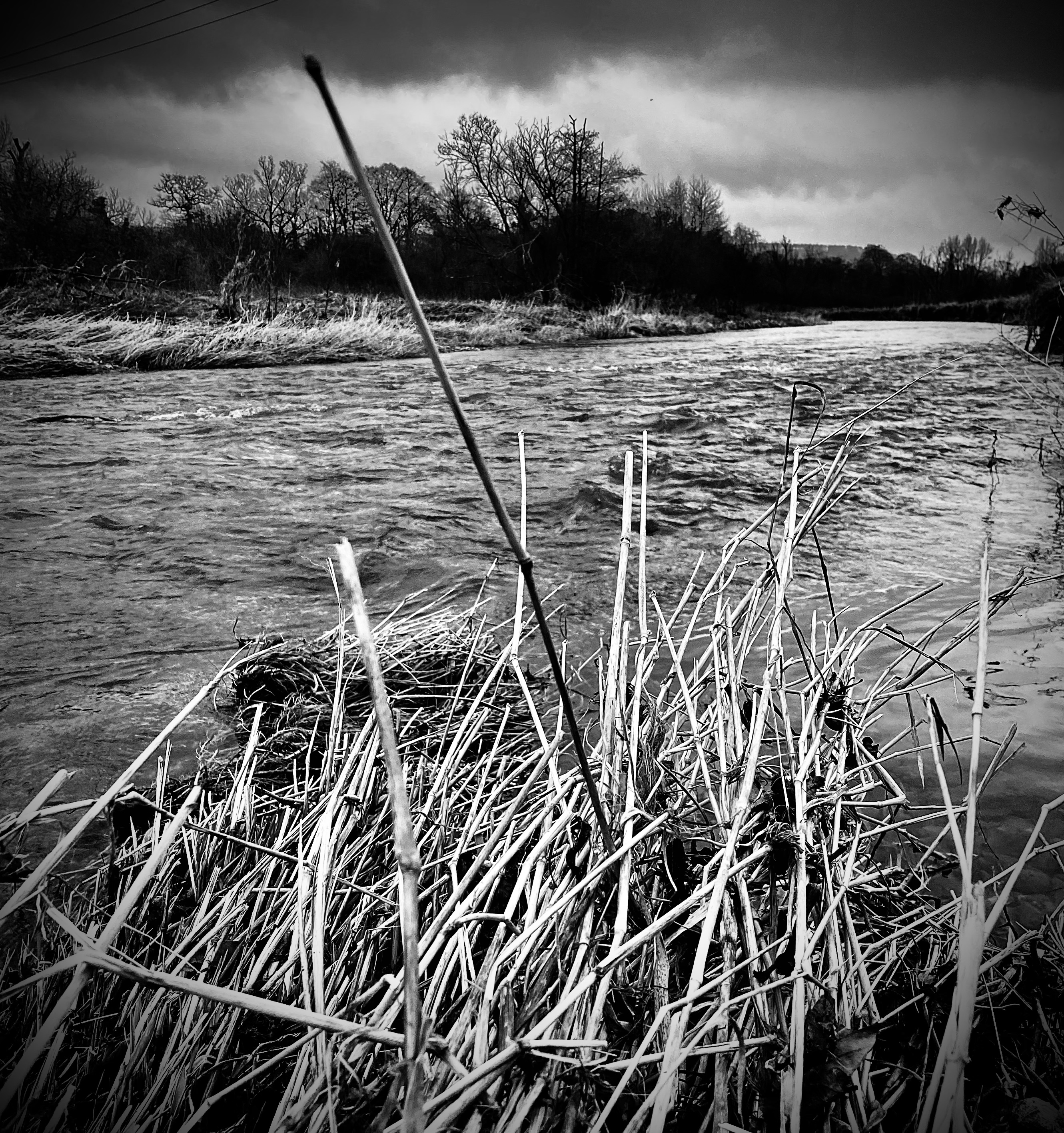 The year ended with a walk under a damp and grey clouded sky. Not maudlin black and dismal, just a heavy hanging sky that melts seamlessly into the river. Rae and I clad in wellies watch Sherlock comically tiptoeing through the mud. Peering through the sentry line of skeletal trees I noticed there was a glimpse of a brighter patch; a hint of blue over the valley. No more than an artist’s brush stroke, but a smile worthy hint just the same.