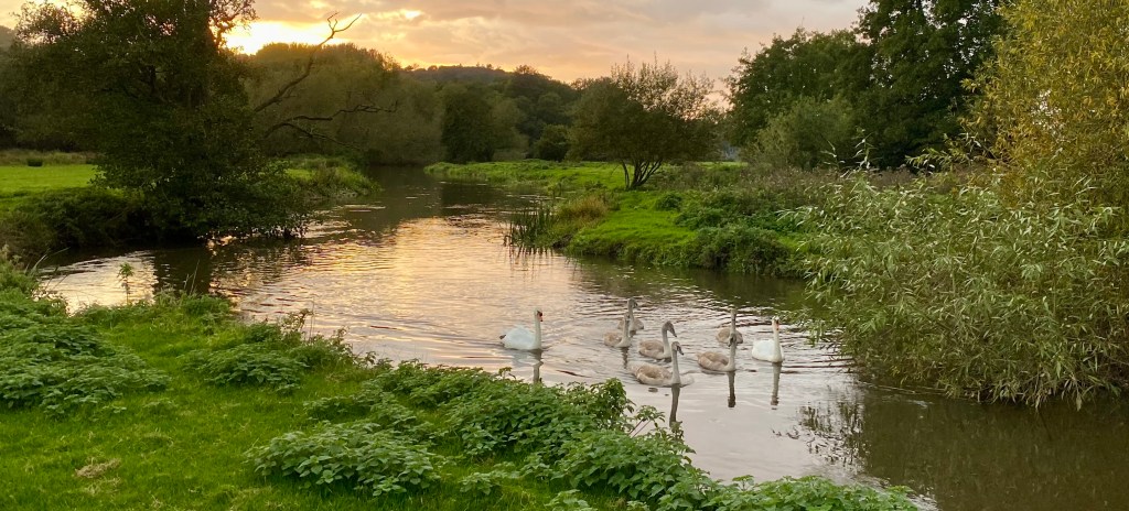 Continuing downstream, enjoying the cool morning air I began to tune into the sounds of nature waking up. Above the tranquil babbling noise of the river sliding by, in my left ear I could hear a couple of male pheasants coughing insults at each other in their harsh rasping tones; accompanied by the almost sarcastic laughing calls of a mallard or two. In my right ear there was a constant cooing from the woodpigeons that clattered in the trees and the occasional hoot from a little owl that was obviously finishing his shift a little late. This soundscape sounded so familiar; but from where? Not from previous walks. Shutting my eyes to take it all in, it suddenly came to me. I was back in the 1970’s lying on my bed listening to Pink Floyd’s “Granchester Meadows” through my head phones…birdsong and riversongs in glorious stereo.