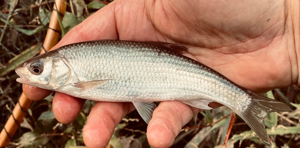 Then just after the muted New Year celebrations I heard some welcome news at last. The Environment Agency had started a restocking programme in November 2019. 6000 dace introduced with a further mixture of 25000 dace roach and chub over the next three years. Of course this coincided with the Covid pandemic; fishing had become an irrelevance. So it was some months later (October in fact,) that I found myself bankside once more. Armed with a pint of maggots and my trusty old trotting gear I headed across the meadow to rekindle my spirits. First trot down and my quill float submerged. A feisty dace was netted. Fin and scale perfection, glowing in the autumn sunshine. Subsequent casts resulted in more dace, plump chub and even a surprise gudgeon. I haven’t caught a “Gonk” on the Culm since (check diaries) 1993. All were in pristine condition. Remarkably whichever swim I offered a bait in the results were the same. No monsters or knuckle rapping reel screechers but jubilation was warranted just the same. Hope thankfully like the river, had been restored. As the cool evening mists drained the colour out of the trees and the crows headed to the woods to roost I retraced my steps across the meadow. My uncontrolable beaming smile lighting up a path through the sheep turds.
