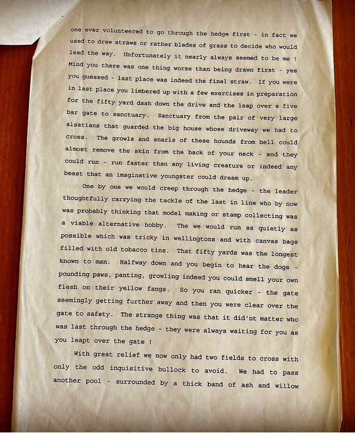 Four am. A raucous awakening. The dog sighs deeply annoyed at the disturbance, but I manage to resist the urge to doze. I am up, dressed suitably in drab greens and browns and await the kettle’s boiling whilst it imitates a jet plane taking off. Outside there is a hint of daybreak in the sky. A hint of promise. I’m going fishing!